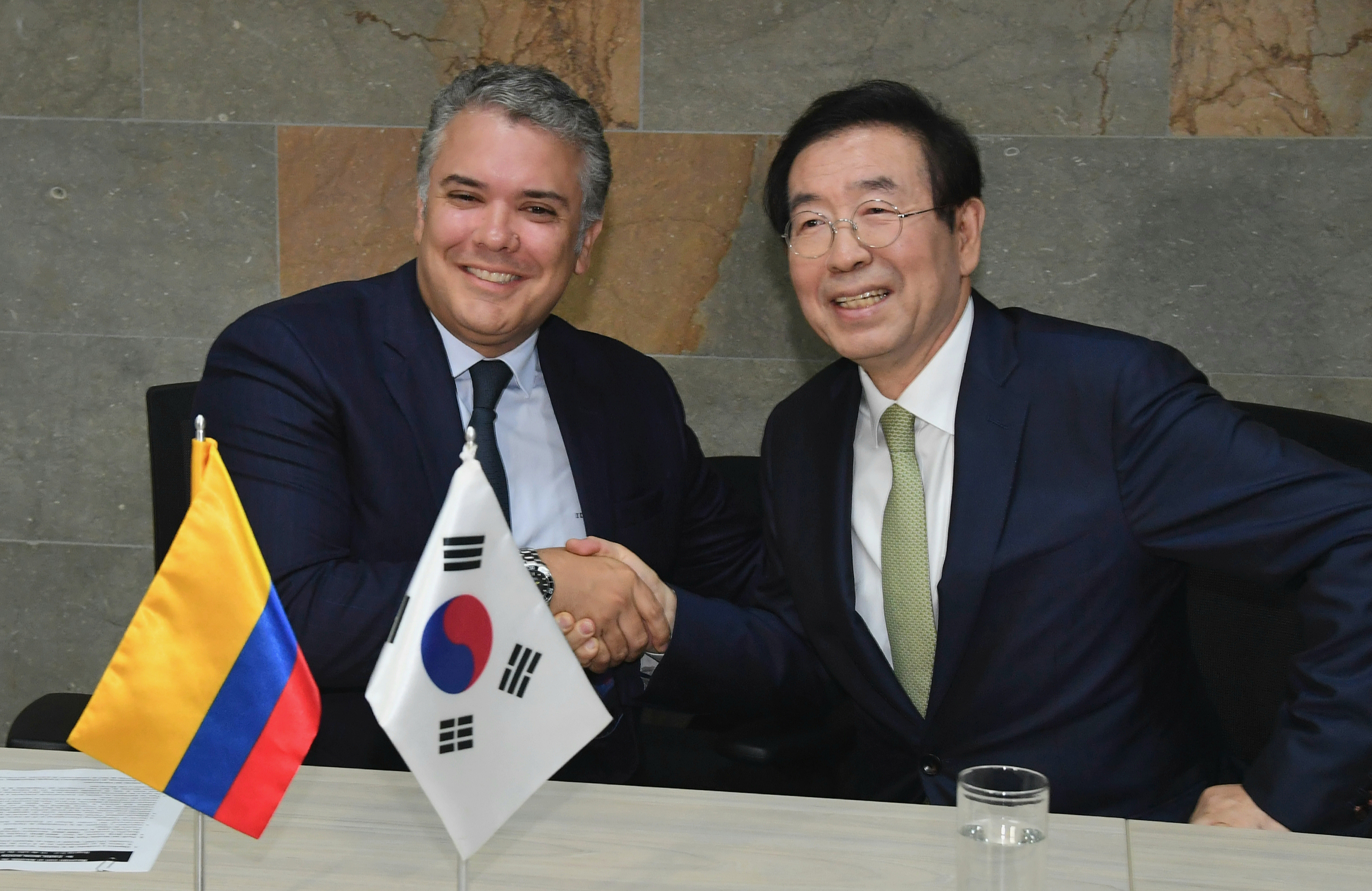 마침 7월 12일 중남미 순방 중인 박원순 서울시장이 메데진 플라자메이어에서 페데리코 구티에레즈(Federico Gutiérrez) 메데진 시장과 만나 '서울-메데진 간 우호협력 결연에 대한 양해각서'를 체결해 메데진은 서울시의 우호도시가 되었다.