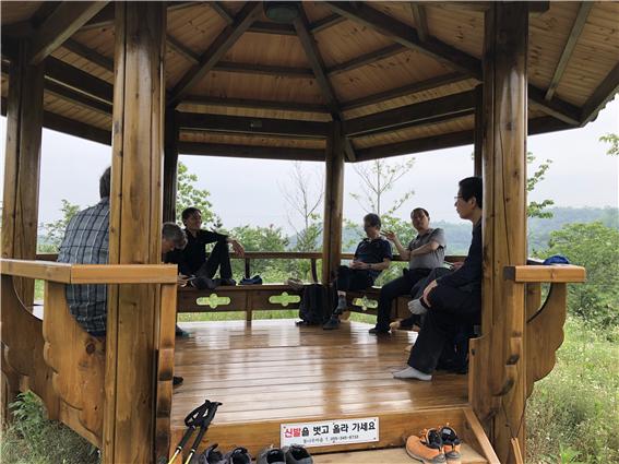 요소요소에 정자를 만들어 놓았고, 돌아오는 길에 말끔히 정리된 정자에 올라 어떻게 시작되었는지 기억이 희미하지만 프랑스와 닭 이야기가 나오고, 꿩대신 닭, 귀신의 시간과 인간의 시간을 구분하는 것이 닭의 울음소리 등등으로 한참동안 닭이 휴식시간의 이야기소재가 되었다.
