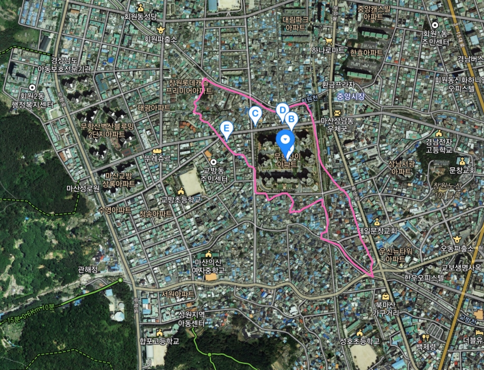 이 글은 창원 소재 '도시문화콘텐츠연구소'에서 펴낸 창원시 마산 회원1지구 재개발사업 ‘마을흔적보존사업 실행계획서(2017)’ 중 발췌한 것이다. 지금은 이미 고층 아파트 단지가 되어버린 이 재개발 지역의 변천과정과 그곳 사람들의 생활에 대한 글이다.