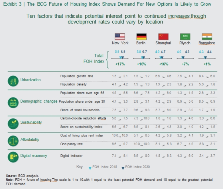지표를 따로 연구한 뒤 지수로 종합해 다양한 형태의 미래주택에 대한 전반적인 수요를 채점했다.