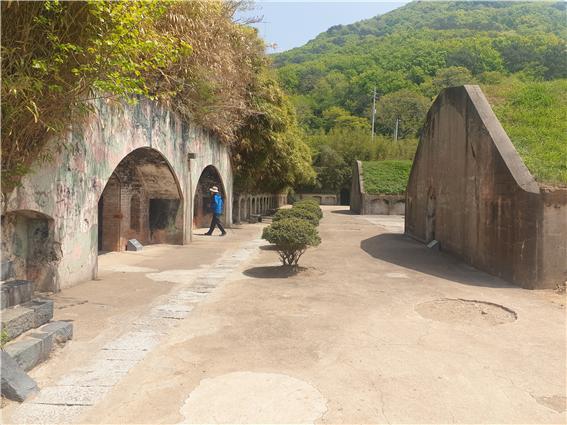 좌측부분이 포대원 막사이며, 우측면 좁은 문이 설치된 곳이 포탄을 저장한 탄약고이다.