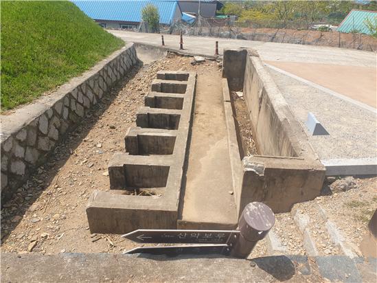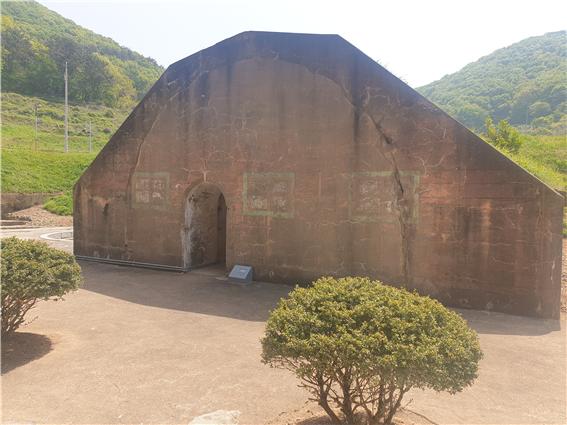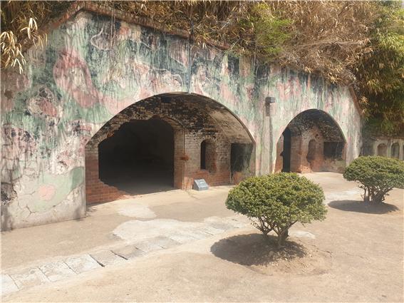 좌측부분이 포대원 막사이며, 우측면 좁은 문이 설치된 곳이 포탄을 저장한 탄약고이다.