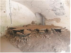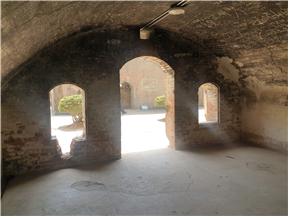 - 막사 내부 : 내측에 침상으로 보이는 단이 보이며, 천정은 아치 형태이며, 창호도 아치형태이다.