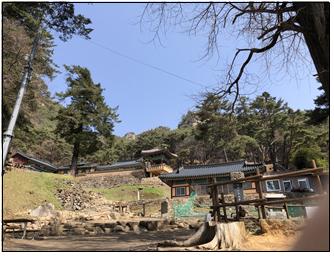 페이스 메이커(서익진)를 앞세워 완만한 돌계단과 흙길을 번갈아 밟으며 무거운 발걸음을 제촉한지 30여분 지나 고견사에 도착했다.