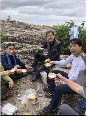 한 회원은 올해 막걸리 대상을 수상한 향토기업이 만든 “맑은 내일”의 막걸리를 준비해왔고, 다른 대원들이 십시일반 준비한 과일과 옥수수·호도과자·커피로 잠시 허리를 펴며 즐거운 시간을 보냈다.