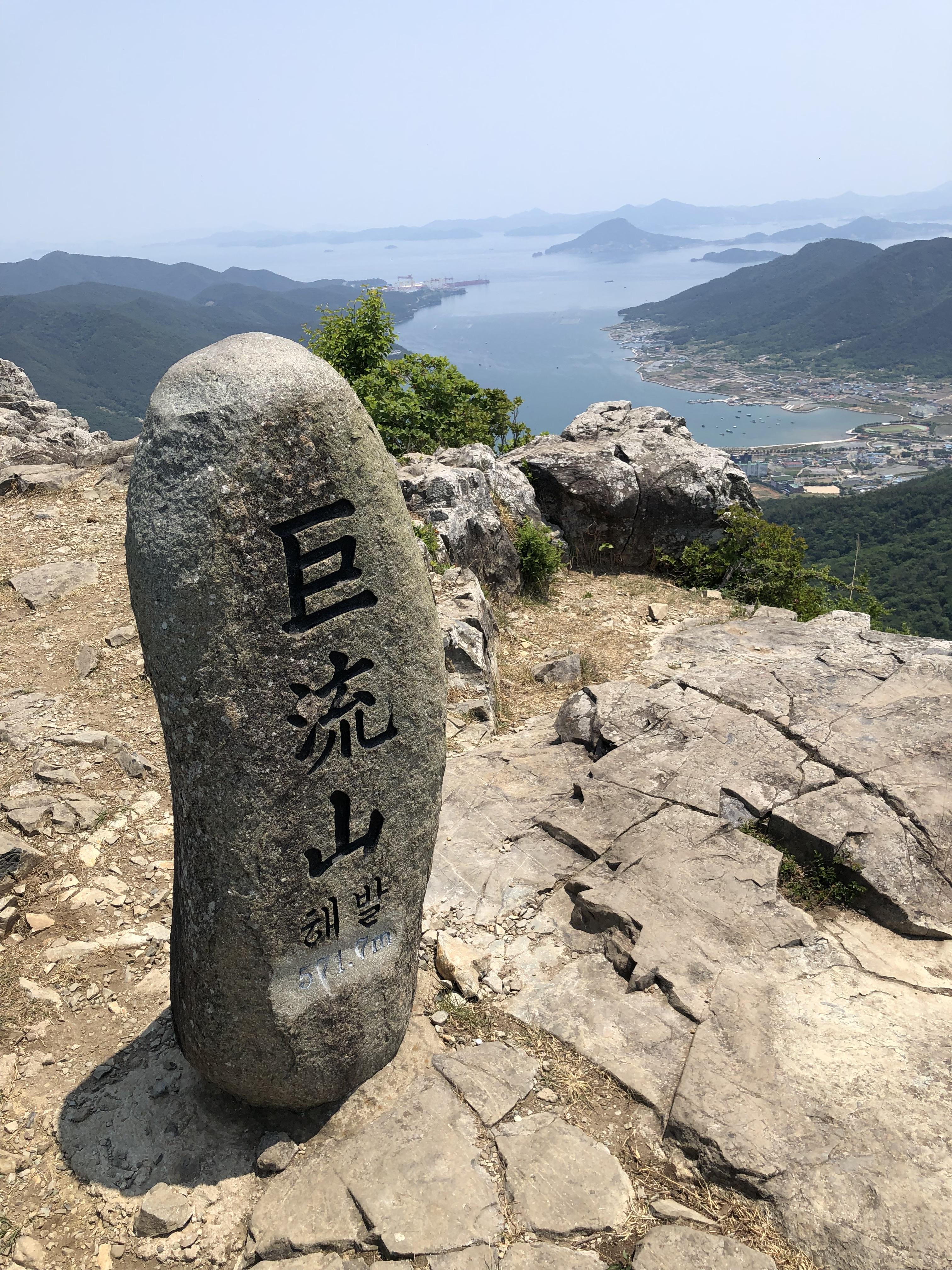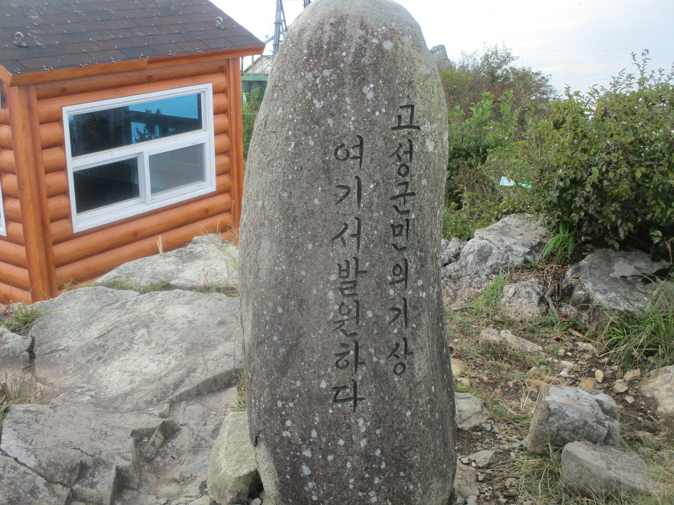 정상까지는 산행을 출발해서 2시간 20분 정도 소요되었다. 높은 산은 아니지만 정상까지는 꽤 지루한 코스 길이었다. 정상에서 사방을 둘러보니 당항포와 마동호가 한눈에 들어왔다. 고성 들판에 솟아 있는 거류산인지라 사방이 한눈에 펼쳐져 마치 공중에 몸이 떠 있는 듯한 느낌을 받을 수 있었다.