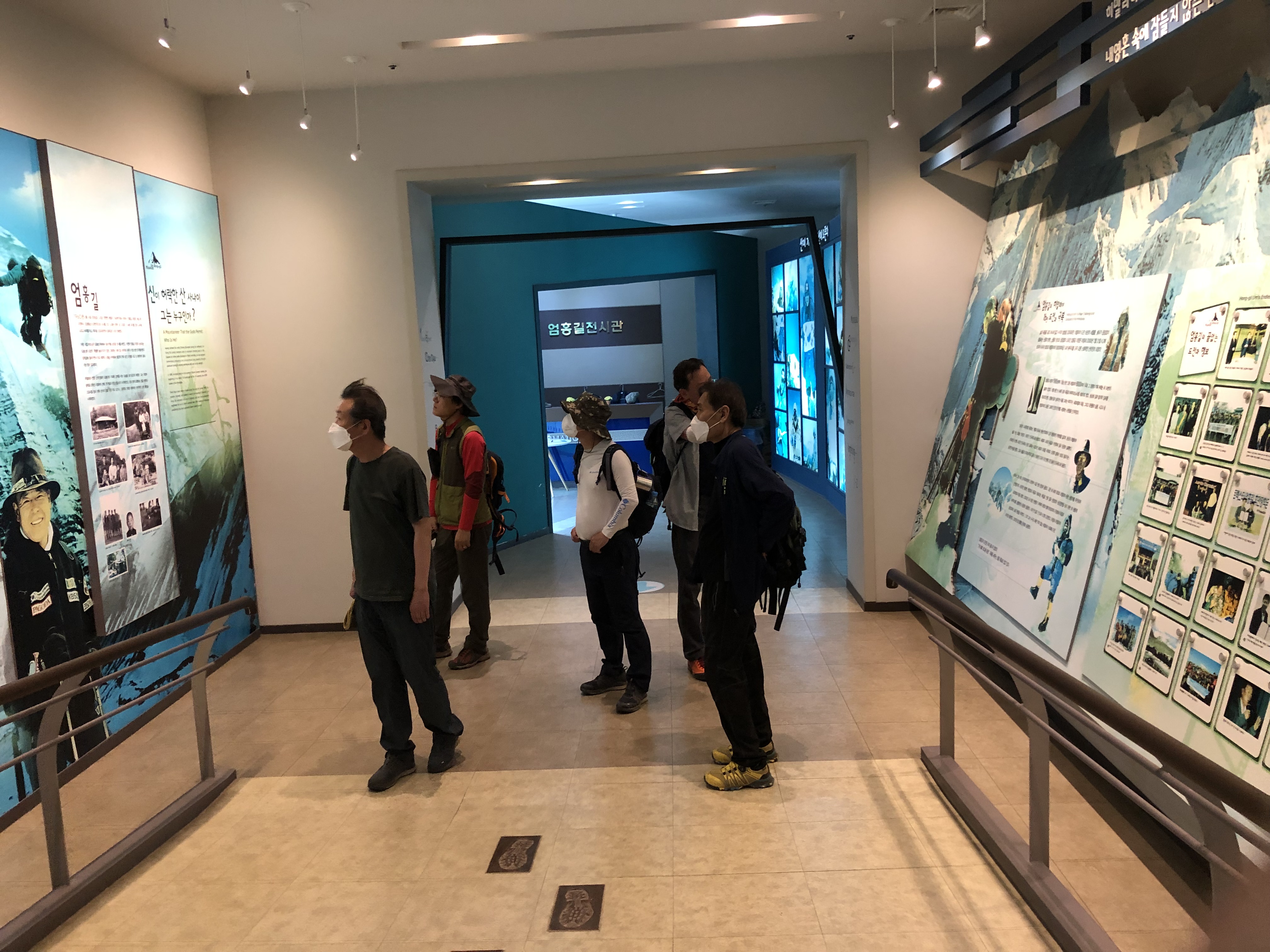 산행의 마지막코스로 엄홍길 기념관을 잠시 들러 그분의 족적과 등정에 관한 기록을 들러보았다(아래 사진-상, 하).
