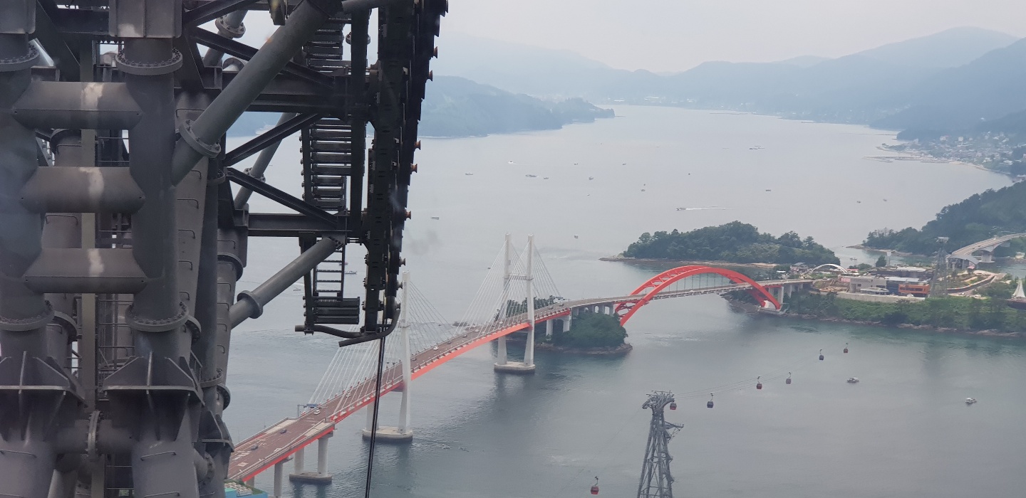 고속도로를 1시간여 시원하게 달리다 보니 어느새 사천시 대방동 바닷가 위에는 케이블카가 오고 가고 바닷가에는 작은 낚시 배들이 문어잡이 철이라 옹기종기 모여 정취를 느끼게 하고 갯가 바다 사나이(내 고향은 사량도) 심장이 나름 찡해진다.