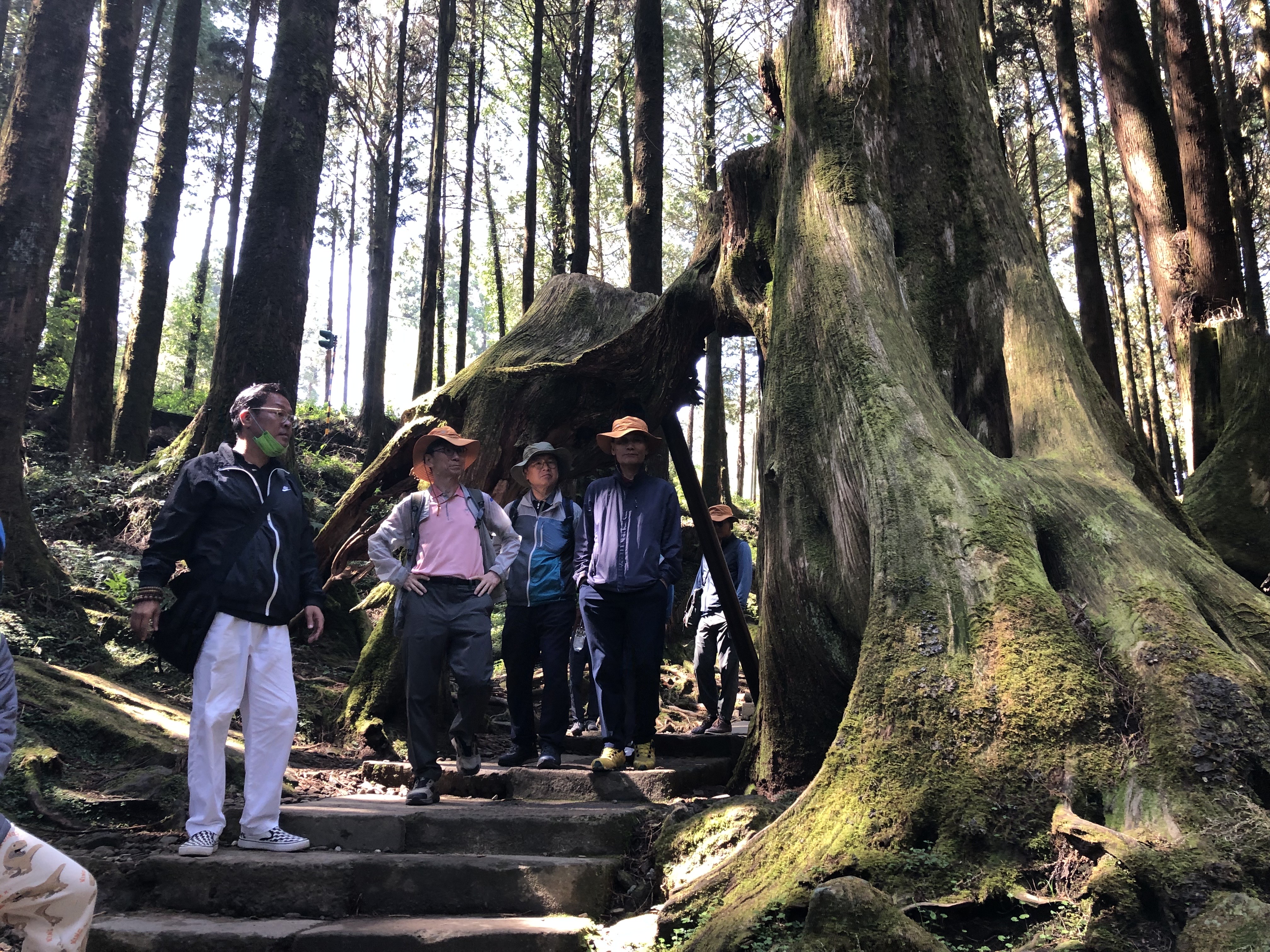 이 곳의 큰 나무들은 최소 800년에서 1900년된 나무라 ‘신목(神木)’이라 불리는데 도처에 있다. 코끼리 코 모양의 나무(象鼻木,상비목)와 3대목(三代木)을 지나 자운사 부근 자운경관대에서 앞에 펼쳐진 풍경을 감상하고 아리산 박물관을 급하게 보고 나오니 경쾌한 연주소리가 들린다.