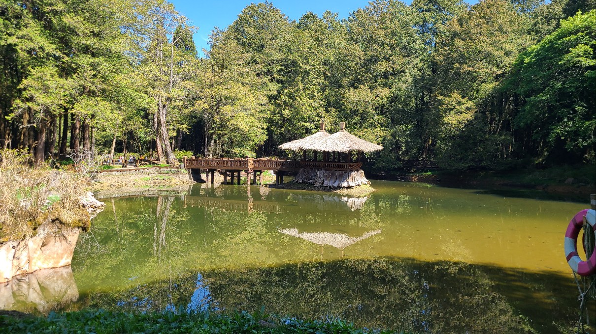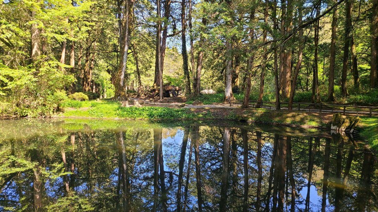 물이 아주 투명하고 햇볕이 강해서 수면 위로 비치는 나무들과 푸른 하늘이 멋지다. 아름다운 풍경에 취해 사진찍기에 바쁘다. 울창한 숲 사이로 나무 잔도(棧道)가 잘 되어있어 숲의 공기와 분위기를 즐기며 여유롭게 삼림욕을 한다.