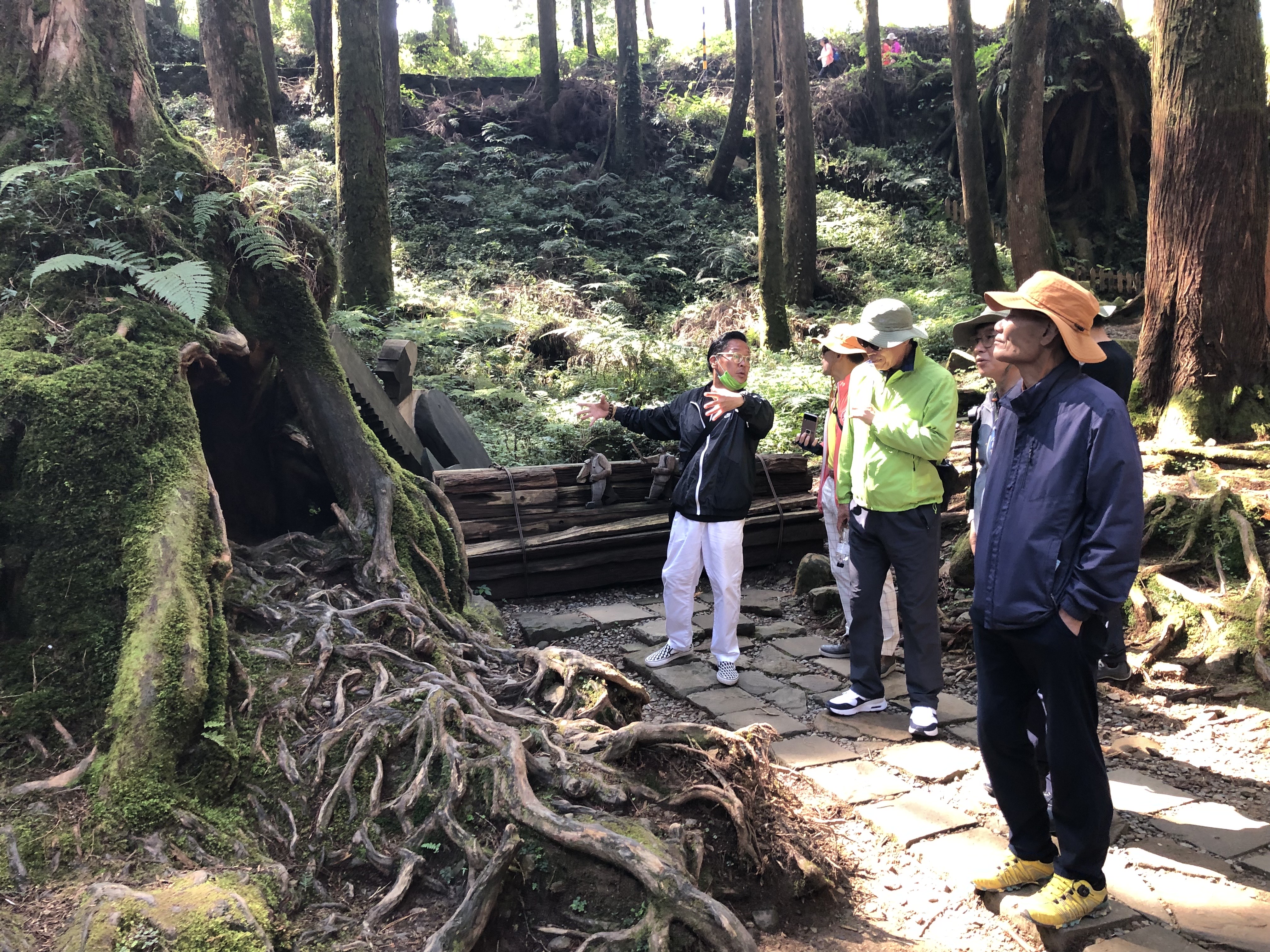 션무역(神木火車站,2138m)에 도착했을 때 시간이 남아, 주변 거목군잔도(巨木群棧道)를 따라 산책을 하고 숲속 의자에 앉아 사진도 찍는다. 12시에 아리산역으로 출발하는 삼림열차를 타고 10분 정도 가서 아리산역에 도착한다. 아리산의 멋진 풍경을 뒤로 하며 버스는 ‘아리산추족문화부락’으로 향한다.<<<