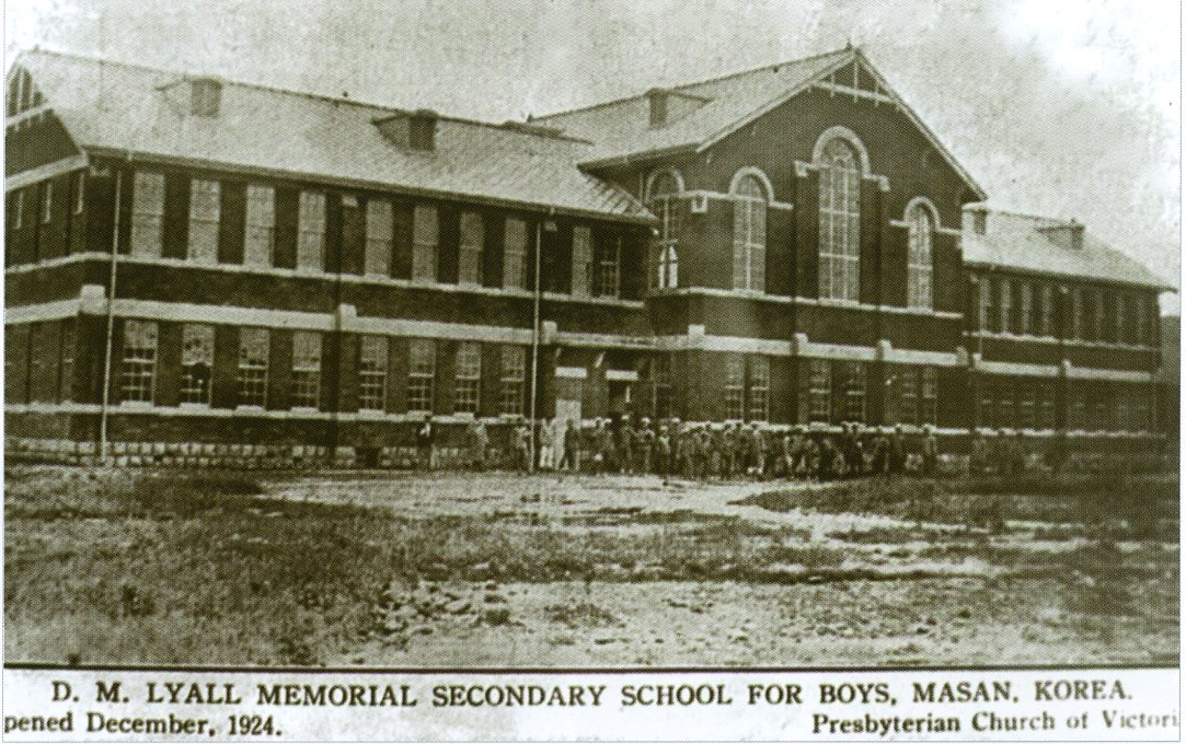 대정 13년(1924) 11월 26일 마크레 씨를 교장으로 성대한 낙성식을 교정에서 거행하고 호주 장로교회 아담스(아담슨(Rev, Adamson, 孫安路, 1860~1915), 호주 빅토리아장로교 파송 선교사. 1894년 부산에서 선교 시작하여 경남 일대에서 활동, 1908년 창신학교 초대교장. 1914년까지 마산에서 활동.) 박사 손에 의해 강당의 개문식도 열렸다.