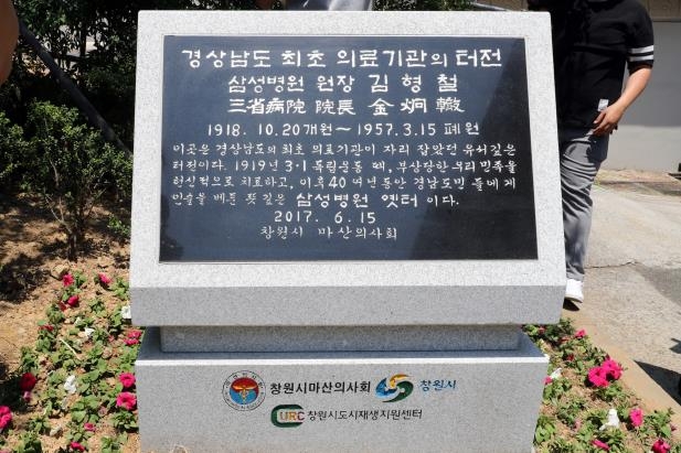 선인(鮮人) 측에서는 구마산 요로즈마치(萬町)에 삼성의원(三省醫院)이 있는데 오카야마의전 출신인 김형철(金炯轍, 1891-1965. 1918년 개원한 마산 최초의 조선인 의사. 19193.1운동 당시 부상자 치료에 헌신해 신망을 얻기도 했다.해방 후 초대 마산시의사회 회장 역임. 아래 사진은 김형철 선생이 운영한 삼성의원 자리에 세운 기념석) 씨가 운영하고 있다.