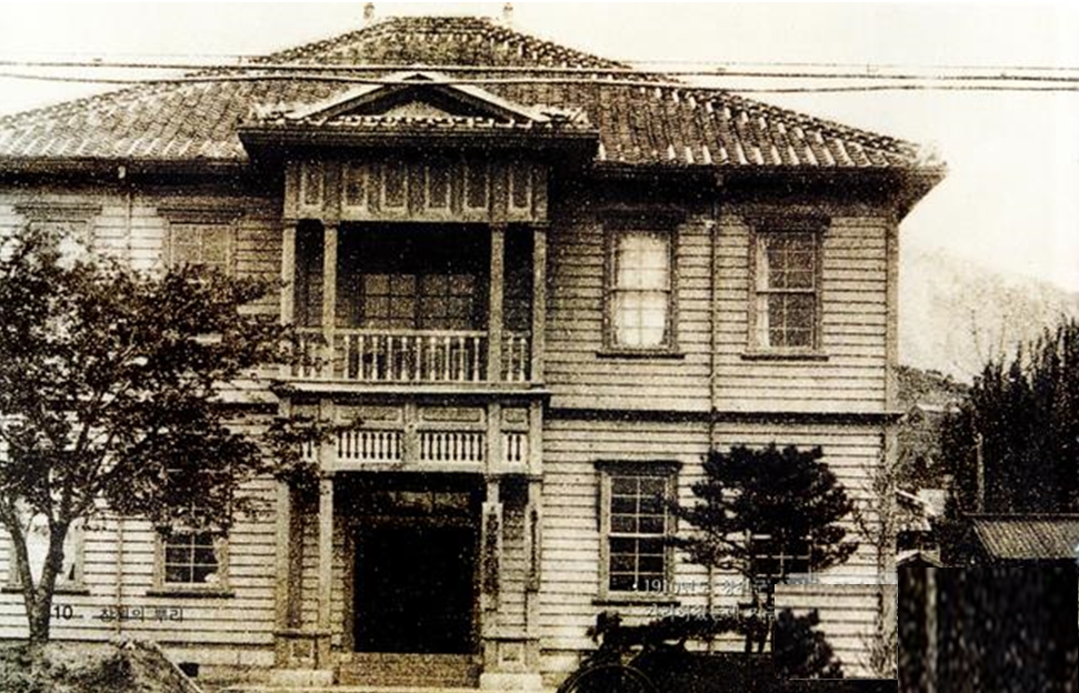 군 청사는 명치 42년(1909)에 마산거류민단 역소 및 거류민회 회의소가 2층으로 세운 것인데, 대정 3년(1914) 3월 말일에 민단제도 철폐와 함께 마산학교조합에 인계되고 창원군 신설에 즈음하여 한 때 군 청사로 빌려 썼다가 얼마 있지 않아 매매계약이 성립되고 누차 개수를 가해 오면서 오늘날에 이르렀다.<<<