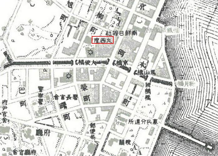 야나기마치(柳町)에 있으며 명치 40년(1907) 봄에 지어진 건물인데 비단 장막이 걸린 극장으로 연극을 주로 하는데 규모는 크지 않다.