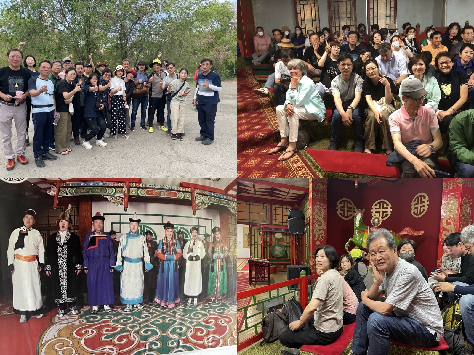 몽골 노래와 연주는 모두 자연과 인간, 환경의 조화가 주된 주제이며, 광활한 초원에서 하늘과 바람, 초원을 달리는 말 등의 대자연 속의 유목민들의 삶을 표현한다. 1시간 정도 관람 후 밖으로 나오니 한지선 간사가 몽골 춤을 멋지게 춘다. 모두들 따라하며 신나는 분위기다.