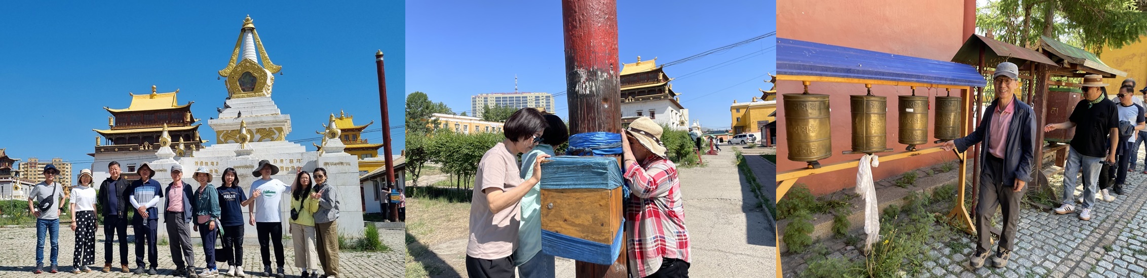 몽골여행 마지막 날, 이비스 호텔에서 여유롭게 식사하고 체크아웃을 했다. 먼저 시 중심부 부근에 있는 티벳불교 사원인 간단사원으로 간다. 울란바트로 시의 교통체증을 실감하면서 사원 입구 광장에 도착했다.