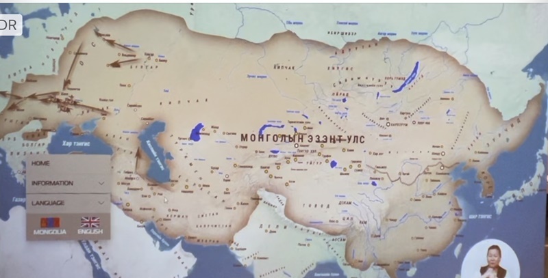 건물 면적은 총 20,500m²이며 9층으로 되어 있다. 1층은 로비로 천장이 매우 높고 다양한 시설이 있다. 우리는 1층에서 2층으로 올라가는 계단에서 자유롭게 앉아 단체 사진을 찍었다. 3층부터 올라가며 시대 순으로 고대 국가(흉노, 선비, 유연), 고대 유목국가(터키, 위구르, 거란), 대몽골, 대몽골제국, 칭기스칸 왕조(14세기)의 왕과 귀족, 세계와 몽골인 등의 15개의 전시실로 구성되어 있으며, 약 12,000 점의 전시품이 소장되어 있다. 그 중에도 칭기스칸이 전쟁 때 실제로 사용했던 9개의 검과 깃발 등은 실제 유물로서 중요하다고 한다. 몽골에는 ‘역사를 모르는 사람은 숲 속의 길 잃은 원숭이와 같다’는 말이 있다는데 역시 역사를 중시하는 나라답다.