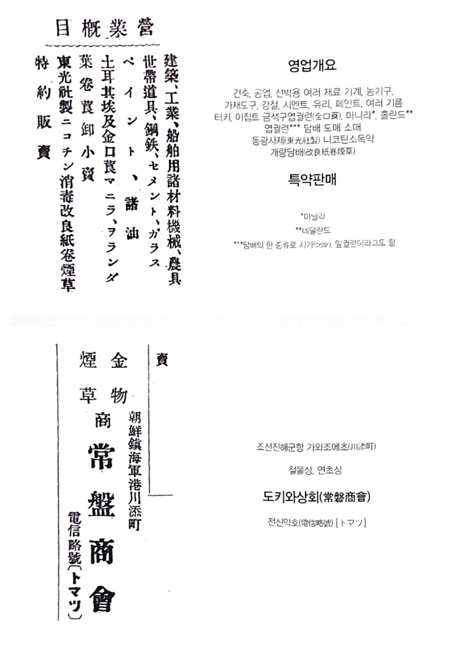 이것이 도착하는 동시에 도키와도오리(常盤通)에 있는 도키와상회(常盤商会, 아래 그림은 상반상회의 광고문) 앞, 진해좌(鎭海座) 옆 광장, 경찰서 앞 세 곳에 소방기계고를 설치했다.