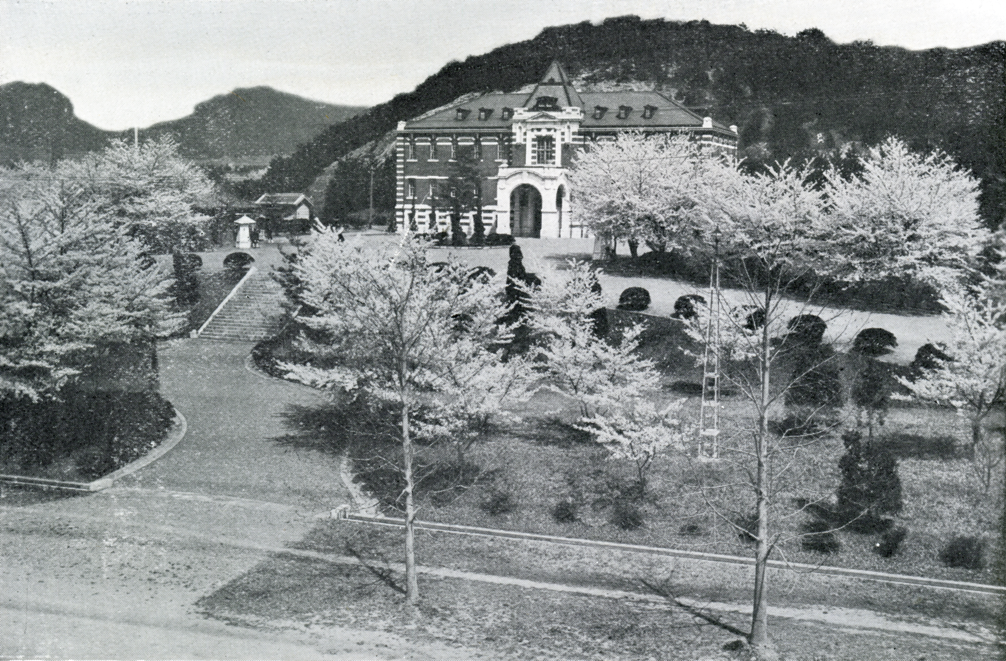 아직 시가지에 아무것도 없었을 때인데 남십(南辻, 미나미츠지) 부근의 논밭 속의 온돌집에서 업무를 시작한 것이 애초의 모습이었다.