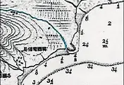 (연두색 삼각형이 수산시장 매립계획지, 노란색은 각국공동조계지, 파란색은 당시의 간조시 해안선입니다)