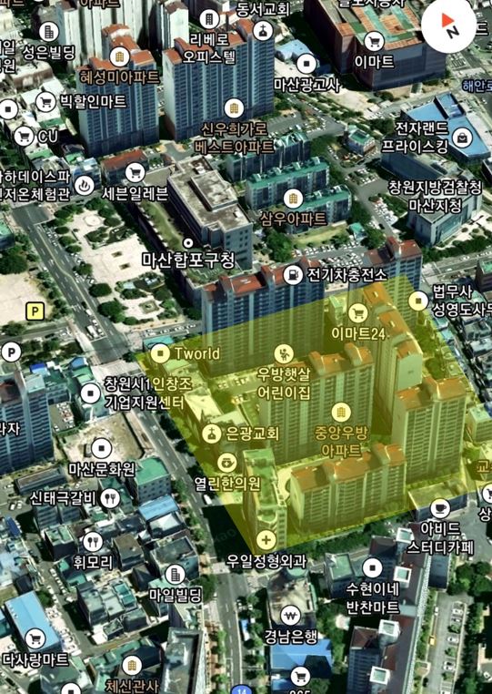 미야코마치(都町) 대로 장군천 따라 월포교 부근에 있다. (현 마산합포구 중앙동 우방아파트 단지, 아래 사진 노란 부분)